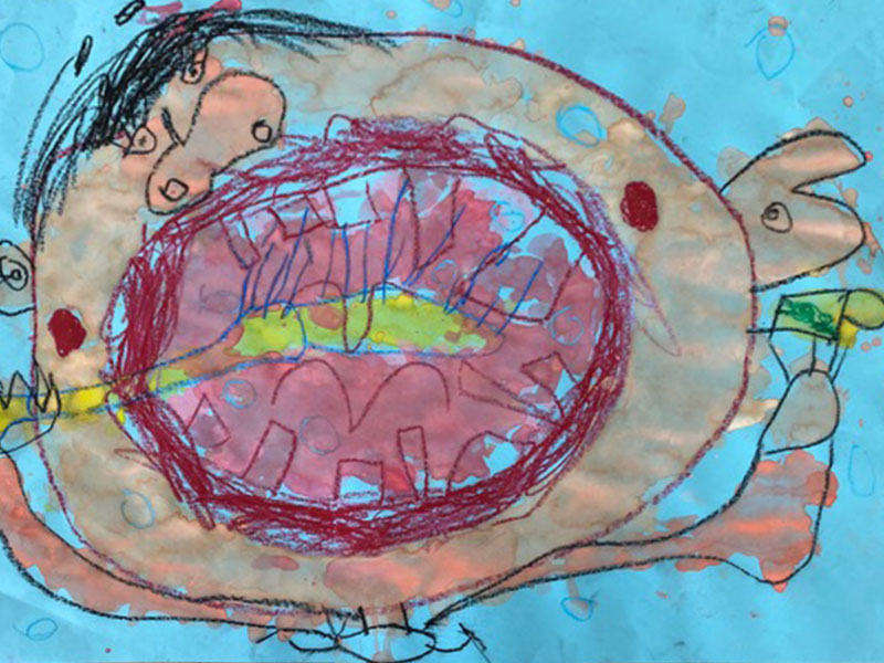 口の中をクレパスでのびやかに描かれ、色彩もきれいだった。