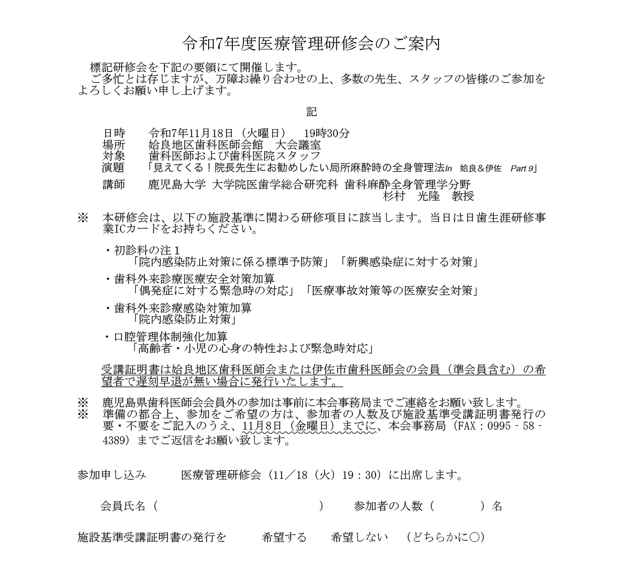 令和7年度医療管理研修会のご案内